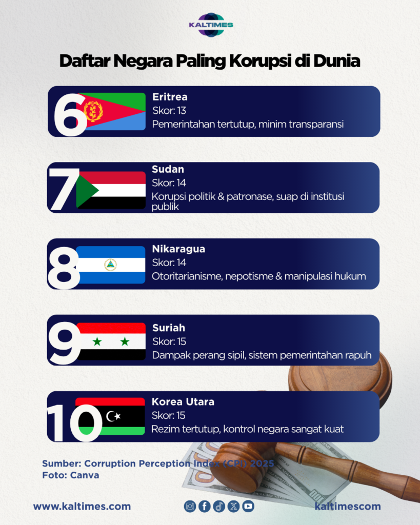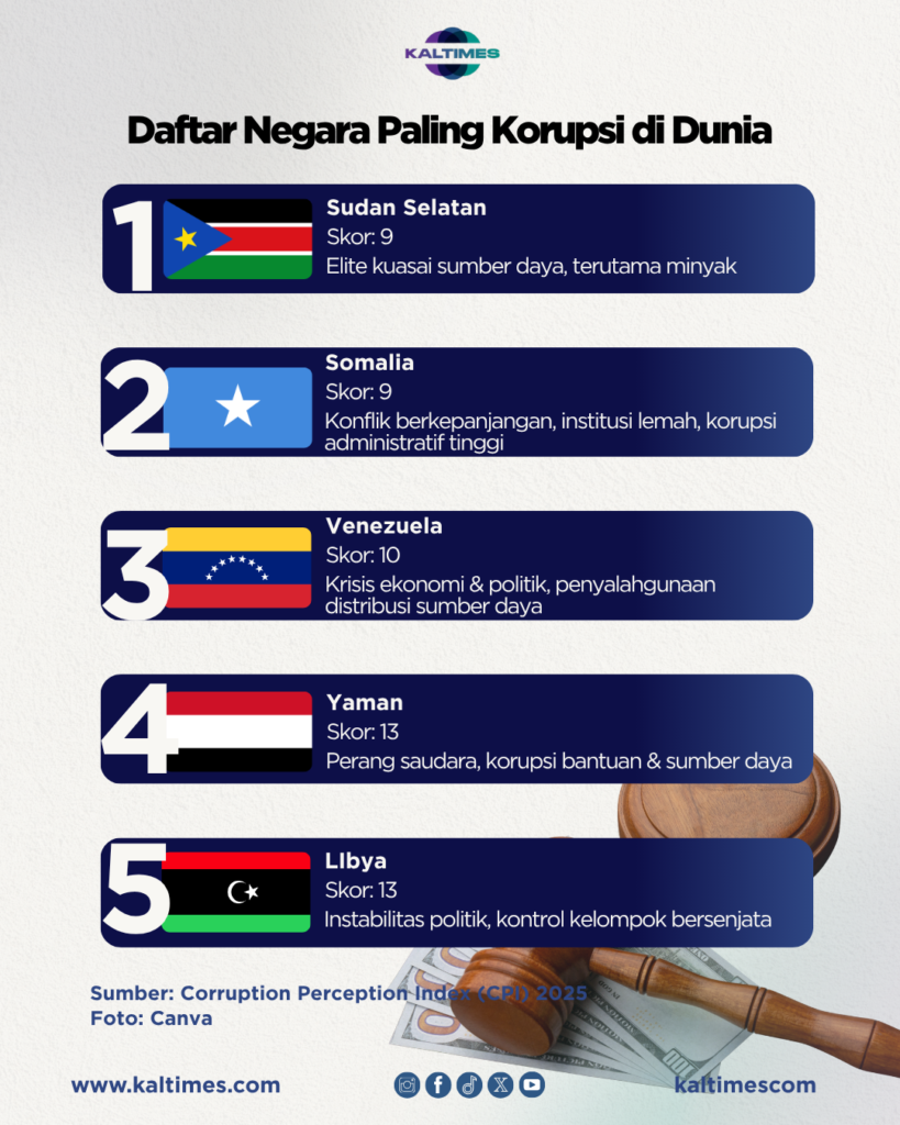 Isu korupsi masih menjadi tantangan besar yang menghambat kemajuan ekonomi di banyak negara. Transparency International kembali merilis Corruption Perception Index (CPI) atau Indeks Persepsi Korupsi untuk tahun 2025.