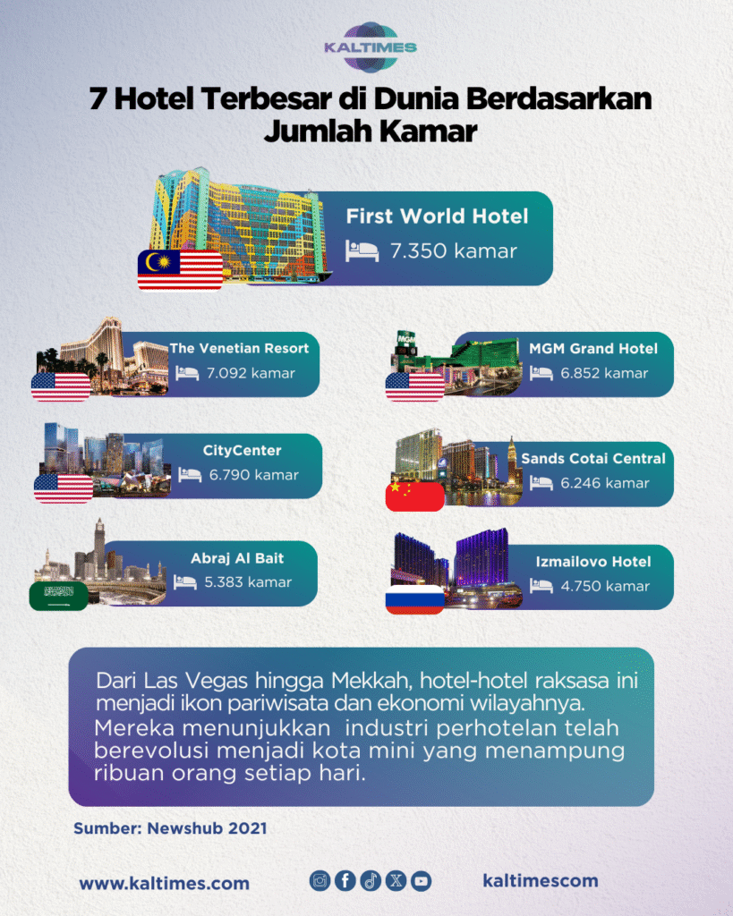 Dari Las Vegas yang glamour hingga Mekkah yang religius, hotel-hotel raksasa ini bukan sekadar tempat bermalam, tetapi juga ikon pariwisata dan ekonomi di masing-masing wilayah. Skala mereka menunjukkan betapa industri perhotelan telah berevolusi. Dari awalnya sekadar ruang tidur menjadi kota mini yang menampung ribuan manusia, setiap harinya.(*)