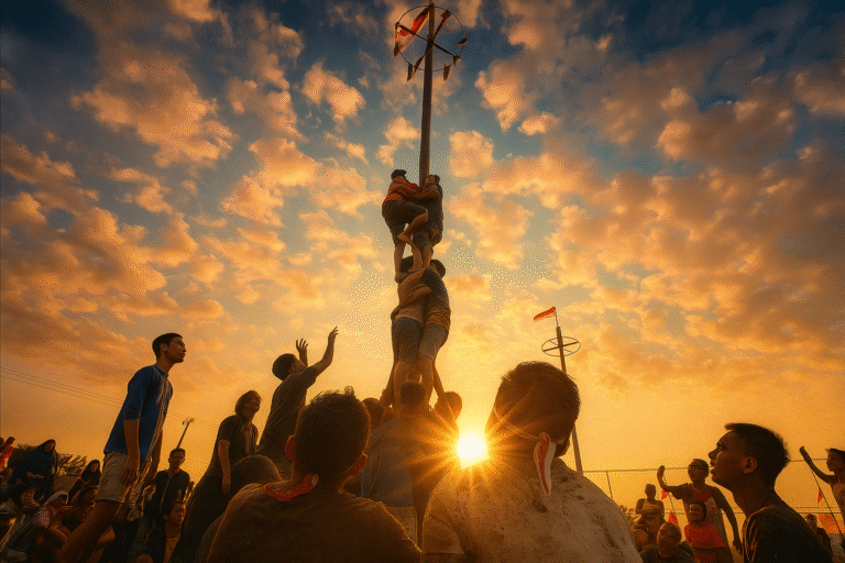 SETIAP Agustus, suara tawa dan sorak sorai kembali terdengar. Anak-anak berlomba makan kerupuk. Ibu-ibu balap karung. Bapak-bapak tarik tambang. Semua