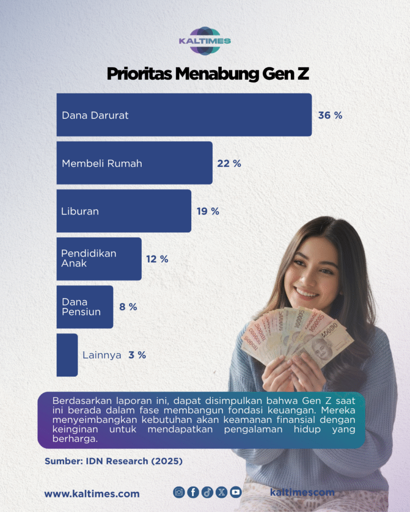 Menurut Indonesia Millennial and Gen Z Report 2025 yang dirilis oleh IDN Research Institute, Gen Z memiliki perilaku menabung dan perencanaan finansial yang cukup berbeda dari generasi-generasi sebelumnya. Riset ini dilakukan kepada 750 responden Gen Z di 12 kota dan wilayah besar dari Maret hingga Agustus 2024. Metode penelitian kuantitatif dan kualitatif mereka gabungkan untuk mengetahui prioritas dan tujuan utama Gen Z menabung.
