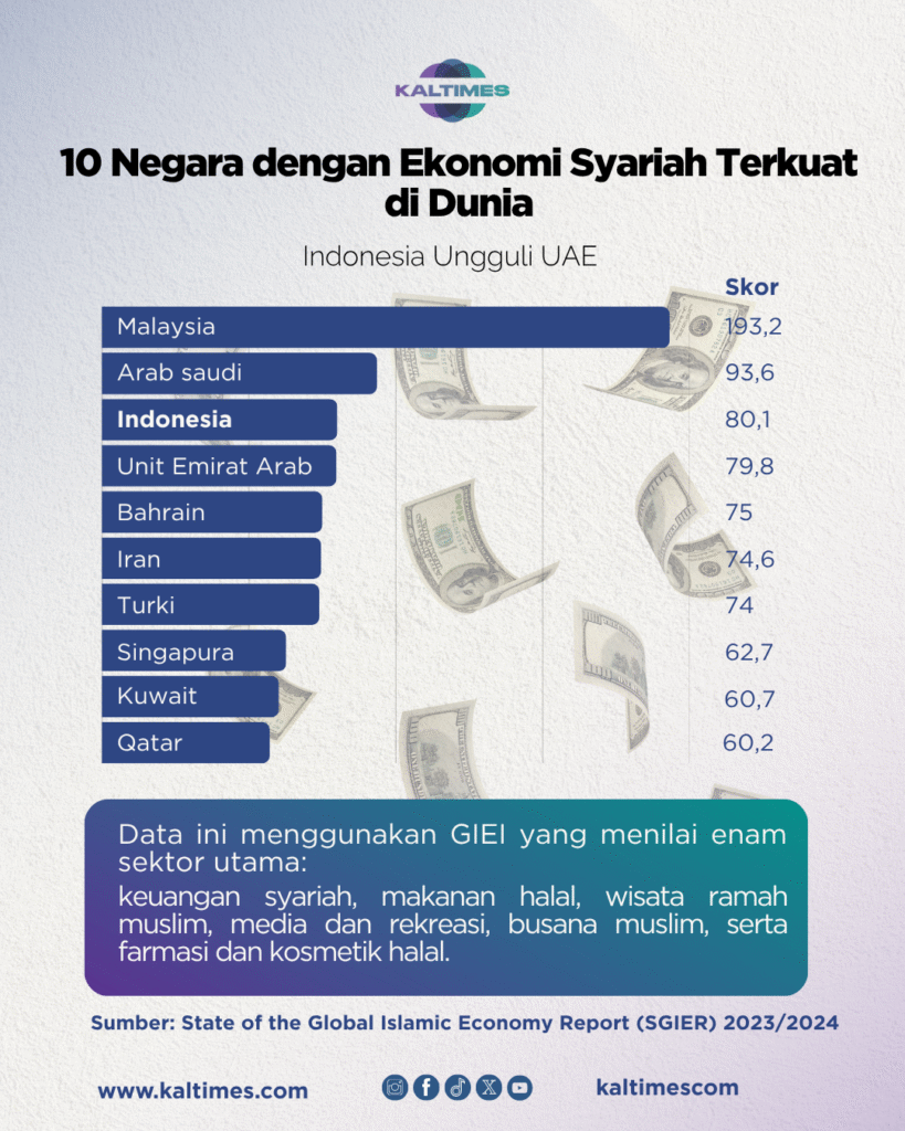 Laporan ini berasal dari State of the Global Islamic Economy Report (SGIER) 2023/2024 oleh DinarStandard lembaga riset strategi pertumbuhan global yang berbasis di Dubai. SGIER merupakan laporan tahunan yang memetakan kekuatan ekonomi syariah dari 81 negara, berdasarkan berbagai sektor. Untuk menentukan peringkat, DinarStandard menggunakan indikator Global Islamic Economy Indicator (GIEI) yang menilai enam sektor utama: keuangan syariah, makanan halal, wisata ramah muslim, media dan rekreasi, busana muslim, serta farmasi dan kosmetik halal.
