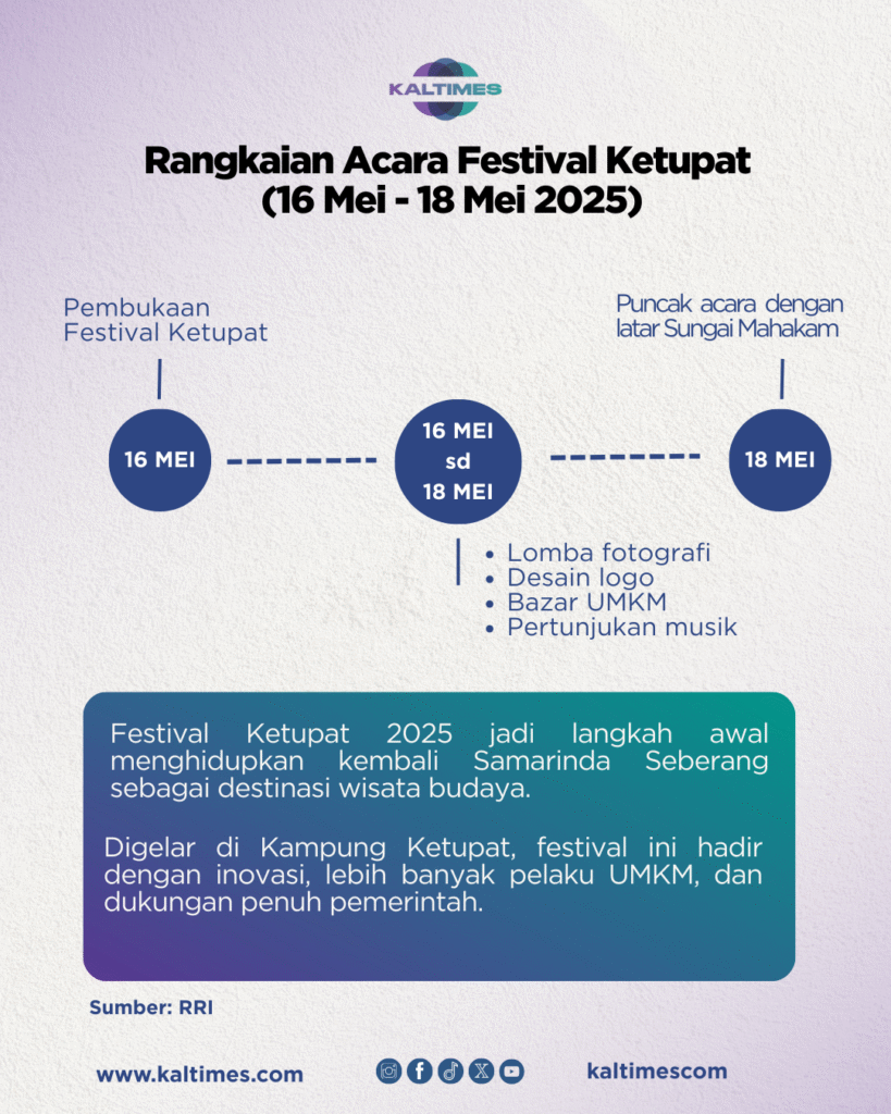 Puncak acara dijadwalkan berlangsung pada malam hari dengan visual Sungai Mahakam sebagai latar utama. Penataan kawasan dan pembangunan infrastruktur, termasuk area parkir, menjadi perhatian serius ke depan. Dengan dukungan berbagai pihak, Festival Ketupat tak hanya menjadi perayaan tahunan, tapi juga tonggak awal kebangkitan Samarinda Seberang sebagai ruang budaya dan ekonomi rakyat.(*)